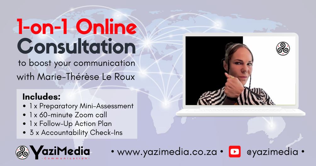 Marie (Marie-Thérèse) Le Roux empowers experts and entrepreneurs to communicate more effectively, online and off. As a creator, educator and speaker, she has worked, lived and travelled in and among an array of cultures and subcultures — and lived to tell the tale. From the scorching sands of the Empty Quarter Desert to the spotlight of the stage and the intercultural frontiers of online remote work, Marie’s diverse experiences illuminate universal principles for navigating communication. The University of Leeds, UK, awarded Marie’s Masters degree in Teaching English to Speakers of Other Languages with distinction. Her work has earned recognition and awards from educational bodies in Taiwan, Malaysia, Oman and South Africa. But what matters most is that Marie has helped her clients and audiences from across the globe enjoy the benefits of better communication in their work and their worlds.